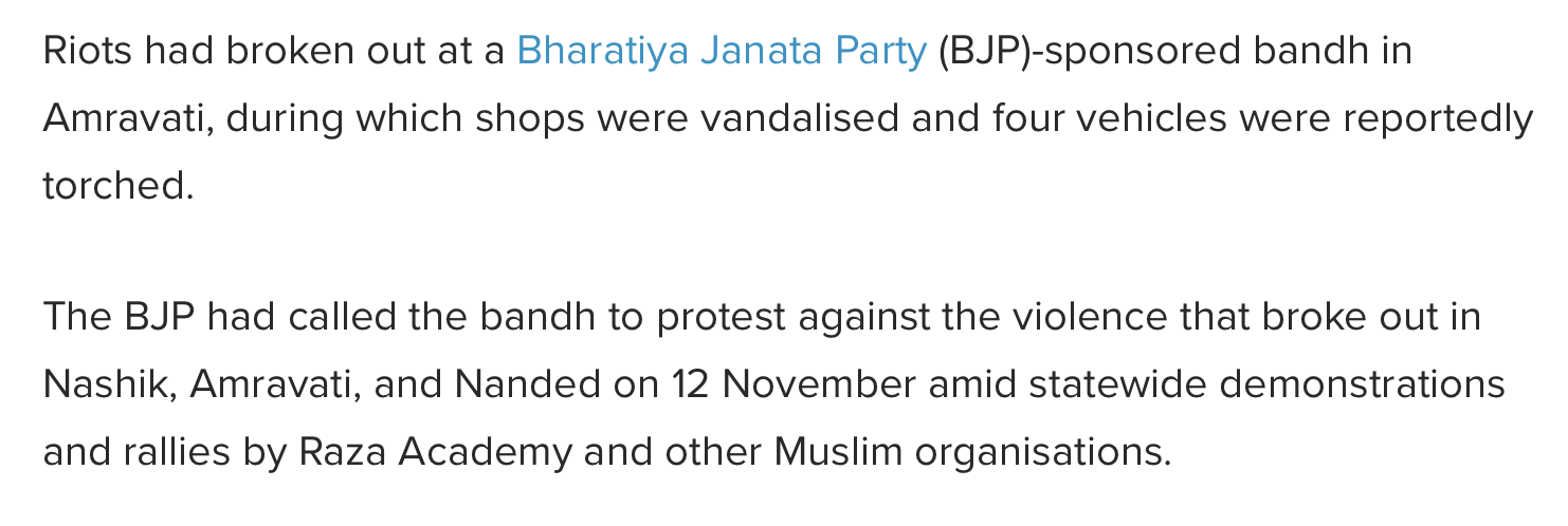 Recently, violence had gripped the state of Maharashtra this week, most notably the city of Amravati in Vidarbha, following the state-wide protests and rallies organised by some Muslim organisations on Friday, November 12, against reported incidents of mosques being vandalised in Tripura.