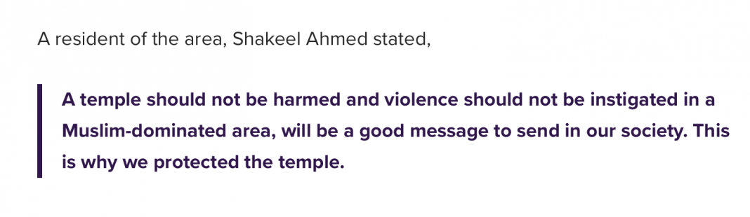 Guess what the media did? They floated a video of Muslim men forming a human chain to protect a temple in the area.