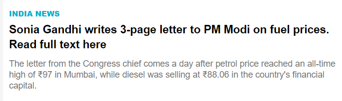 Earlier this year in February, Congress supremo Sonia Gandhi had written to Prime Minister Narendra Modi and accused the government of ‘profiting from people’s misery. “I fail to understand how any government can justify such thoughtless and insensitive measures directly at the cost of our people. Your Government has increased excise duty on Diesel by 820% & on Petrol by 258% over and collected upwards of ₹21 lakh crore in the last six and a half years. This unaccounted-for windfall is yet to be passed to the people for whose benefit it was ostensibly collected,” Gandhi had accused the Central government.
