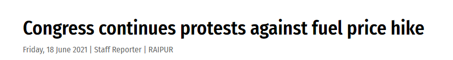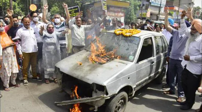 In June this year, the Congress party organised protests at petrol pumps in Punjab and Haryana against the incumbent BJP government. They had demanded rollback of the hike in fuel prices, along with prices of cooking oil and gas. The large-scale demonstrations were held in Mohali, Kurali, Patiala, Bathinda, Ludhiana, Jalandhar, Amritsar, Gurgaon, Ambalana, Panipatand Rohtak. The Congress protestors had even resorted to arson in Amritsar, where they doused a vehicle on fire to send out a message that people were not able to buy cars.