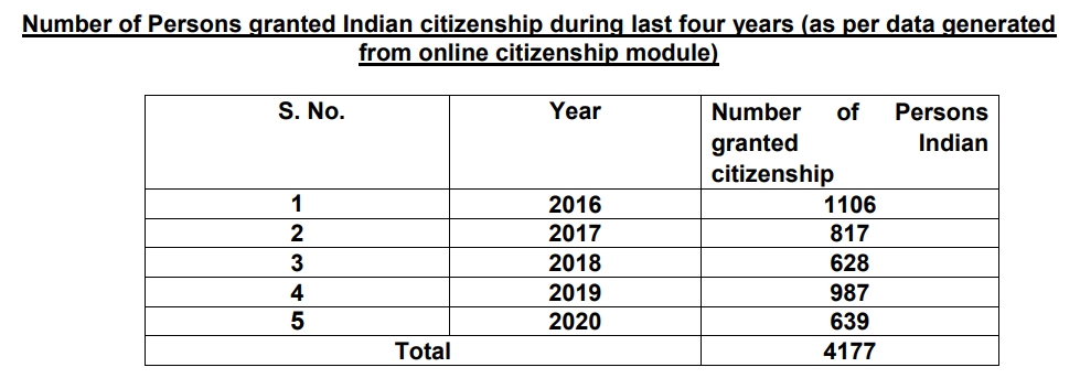 Another MP Abdul Wahab raised the question regarding the total number of foreigners granted Indian citizenship. Rai informed the House that between 2016 and 2020, as many as 4,177 people were granted Indian citizenship.
