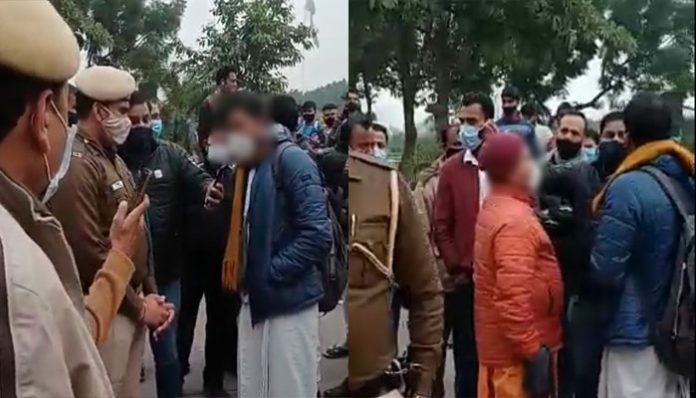 In a video that OpIndia accessed, a volunteer was seen talking to the Police personnel. The Police personnel asked him if he knew he could be fined for gathering a crowd at a public place [under the pretext of Covid-19 protocols]. The volunteer tried to tell him that they were not asking anyone to gather around them, to which the Police personnel said, “If you sing at a public place, the people will gather around you.”