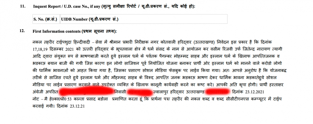 As per the complaint, Waseem Rizvi, who is now known as Jitendra Narayan Tyagi, and some other individuals made derogatory remarks against Islamic prophet Mohammad and the followers of Islam. The complaint further states that the remarks were derogatory and provocative in nature and were made under a pre-planned conspiracy. The accused also shared their speeches live on social media.