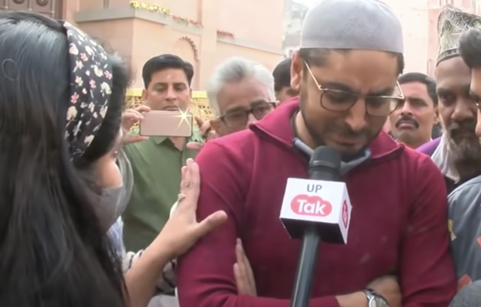 When the UP Tak journalist saw Alam get emotional, she asked, “You’ve become emotional,”. To which, Alam cried. As he started to walk away crying, the journalist tried to console him and asked him if he thinks there is one-sided development happening. “Leave ‘vikas’. Someone’s right is being suppressed,” he said before walking away trying to hide his tears.