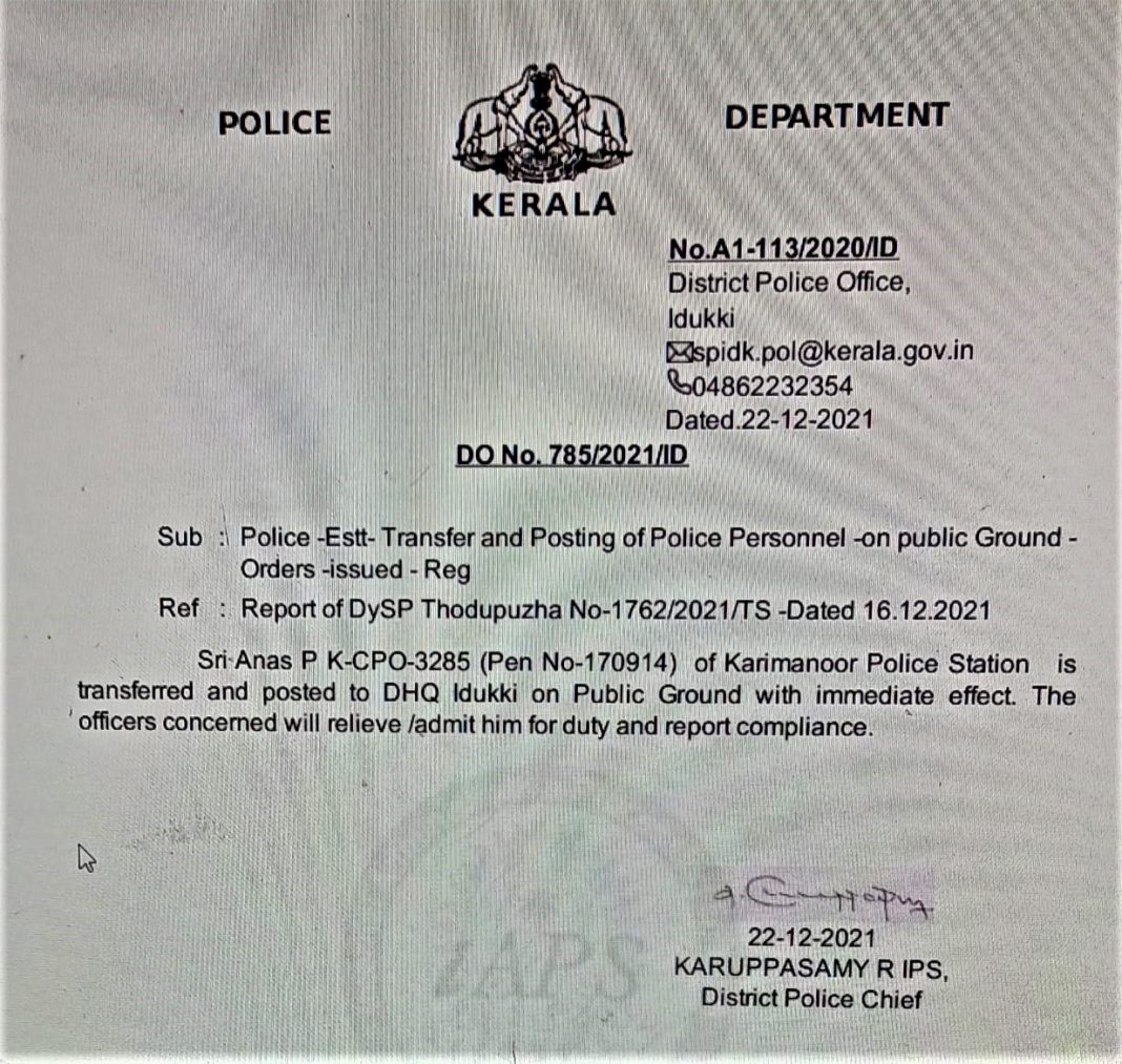 PK Anas is a Civil Police Officer from the Karimannoor police station. After his alleged connection with SDPI came to light, he was attached to Idukki district police headquarters. Anas was suspended later on following an internal probe of Kerala Police confirming he had entered into a criminal conspiracy with SDPI to share sensitive information, posing threat to the life of the individuals.