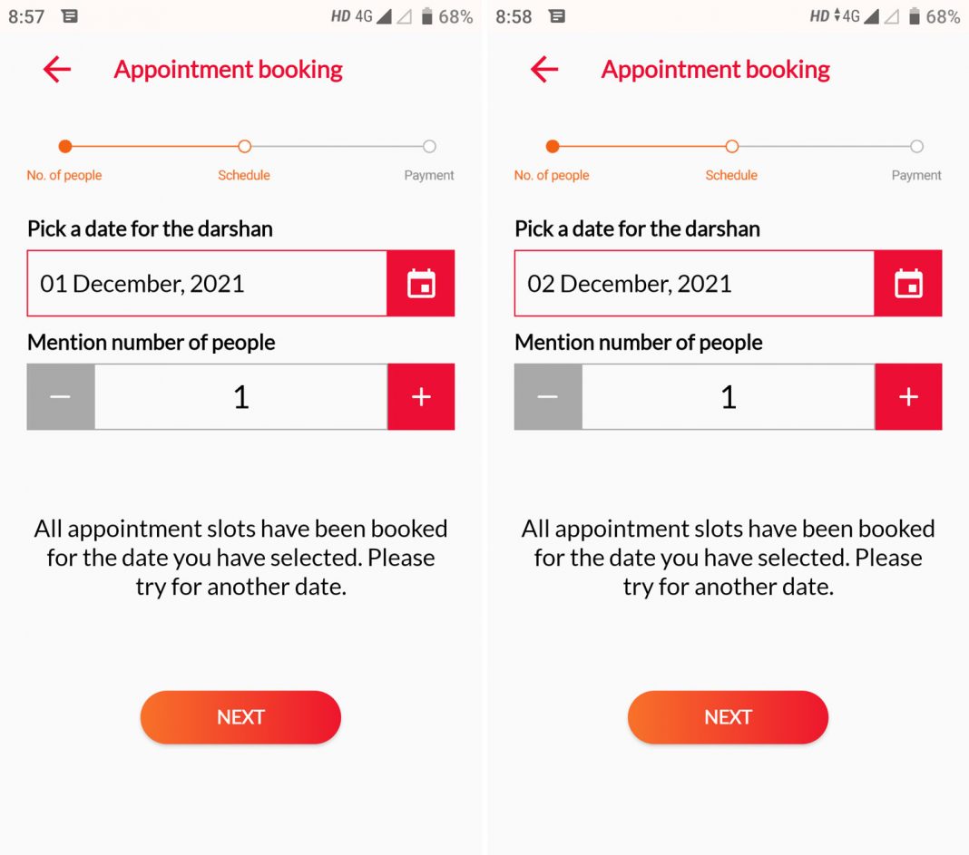 I had an idea how this scam was pulled off, and so have kept the login of the person on my device to expose the modus operandi. This is how it’s done. These people block all available slots in advance through various fake IDs. So no slots are available for genuine devotees. 5/n pic.twitter.com/2ne6U6xN7D