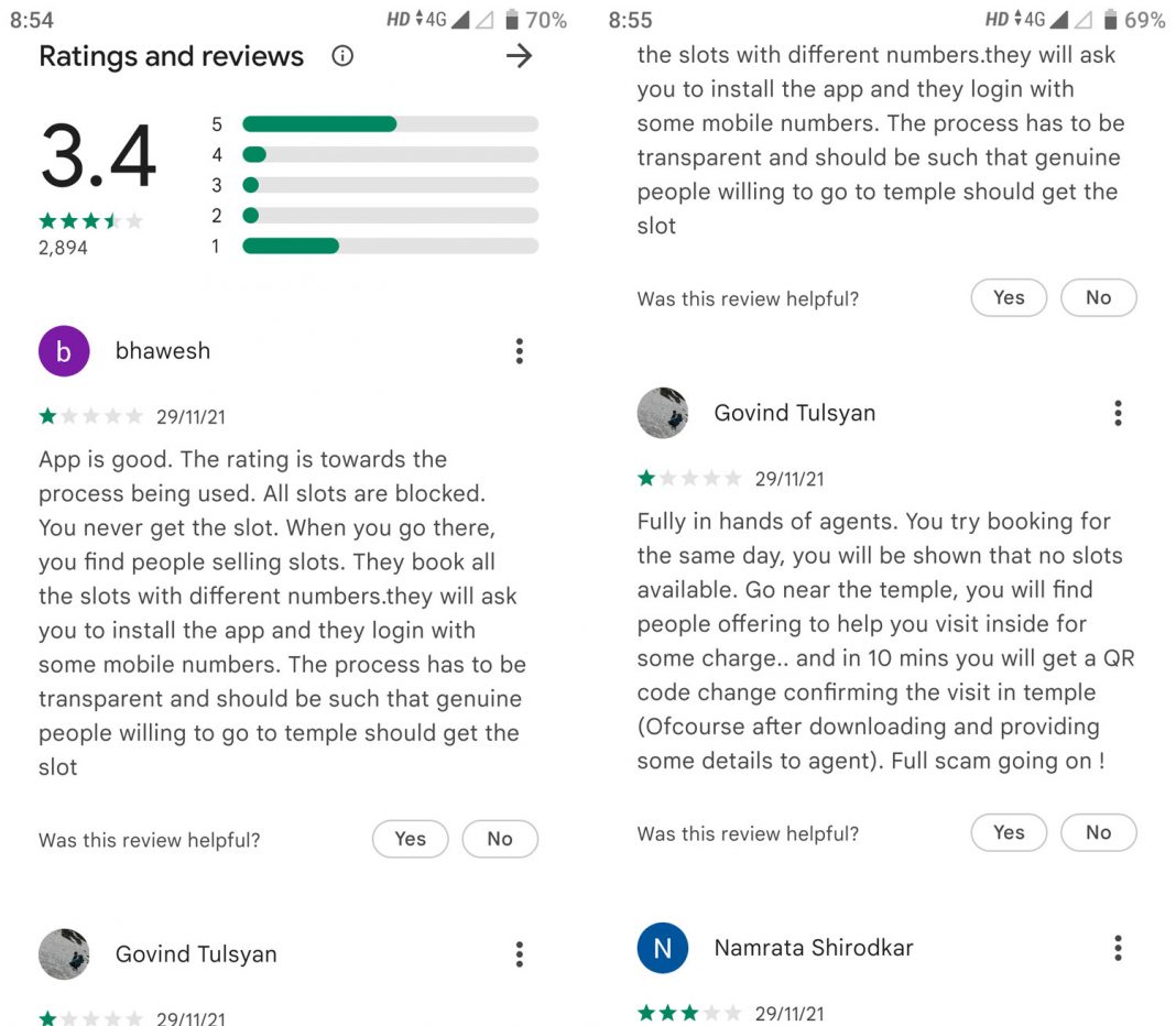 Interestingly, What Thadhani said in his thread was echoed in the reviews of the app as well. Many such reviews stated they came across scammers outside the temple who book the slots as soon as they are opened and charge the devotees for darshan.