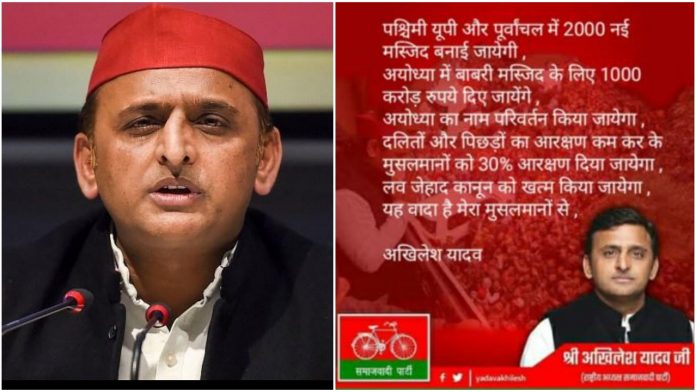Akhilesh Yadav was also quoted as stating that his govt would repeal the Uttar Pradesh Prohibition of Unlawful Religious Conversion Ordinance, 2020 (Love Jihad law). “This is my promise to Muslims,” Akhilesh Yadav declares in the Whatsapp message that has reportedly gone viral.
