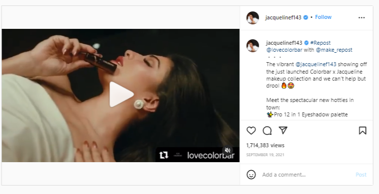 Jacqueline Fernandez was found violating the guidelines and failed to add the disclosure label on a post where she was promoting Colorbar cosmetics.