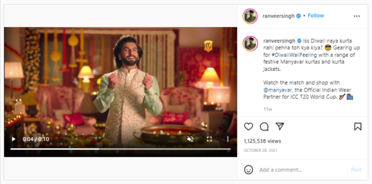 Ranveer Singh on the other hand was promoting brand Manyavar, but failed to add the disclosure tag.