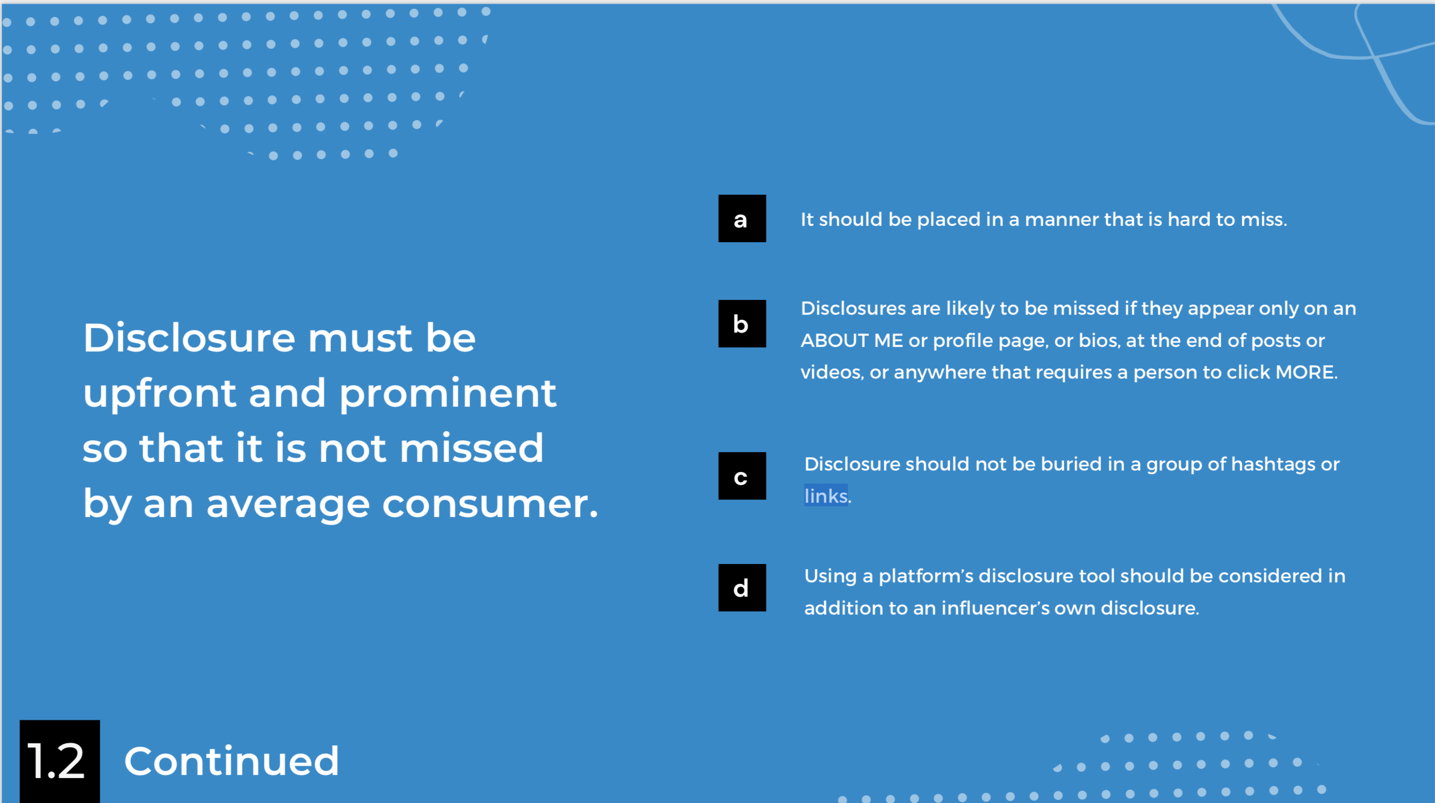 According to the guidelines, the disclosure tags must be prominent so it is not missed by the consumers.