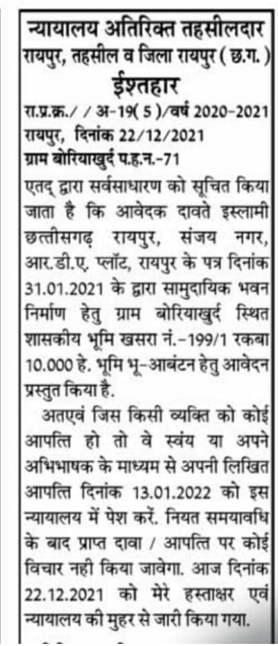 12 acre govt owned land in Raipur Chhattisgarh allotted to Dawat-e-Islami, a Karachi based organisation.