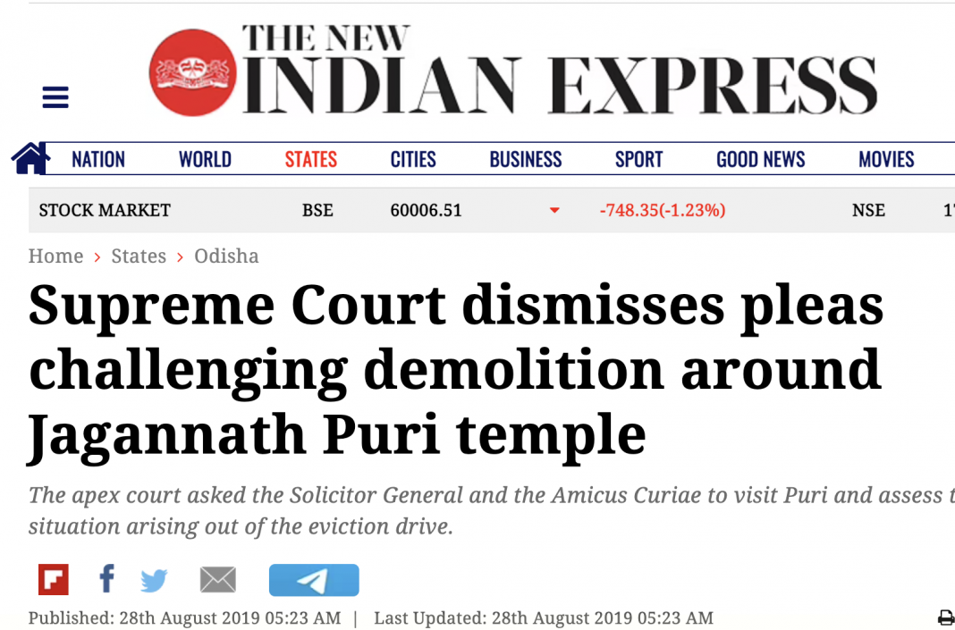 After meetings and inspections, the amicus curie had submitted his report to the SC, stating that there is no forcible evacuation going on and the Odisha government should continue the demolition work, and asserted that the heritage corridor project is necessary and justified. After the report, the SC had allowed the govt of Odisha to continue the demolition drive.