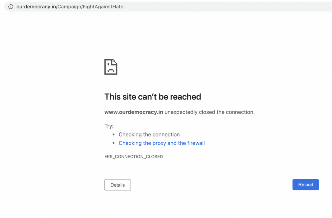 Now, Crowdnewsing as well as OurDemocracy platforms are both unreachable and defunct. And while these platforms have been inaccessible for months now, the social media handle of OurDemocracy, has still not put out any public message explaining why the platform is inaccessible. Last tweet on OurDemocracy’s verified Twitter account was on June 24, 2021 asking to donate to a campaign by Dr Kafeel Khan, while Crowdnewsing’s last tweet was on 10 June 2019, where it shared a clean-chit given to itself and Shehla Rashid by a self-proclaimed fact-checking website in an old controversy about misuse of funds.