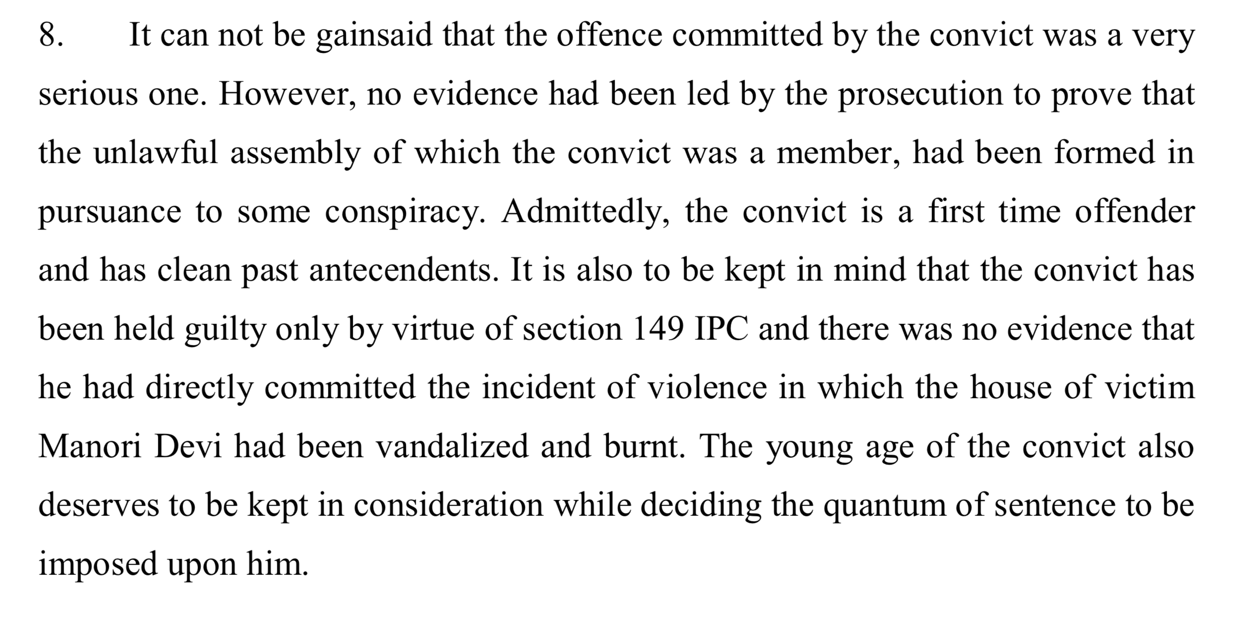 In the sentencing judgement, the court goes a step further and admits that the unlawful assembly was not a part of any conspiracy and that Dinesh has clean antecedents and was not involved in the violence at all.