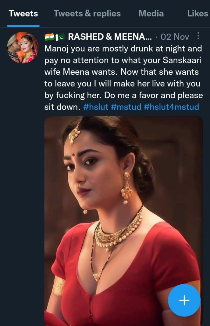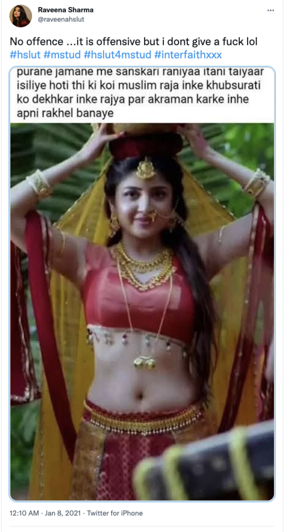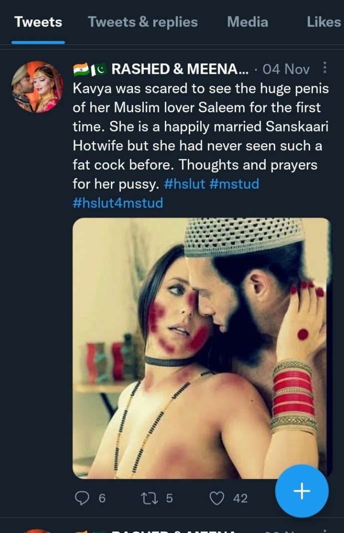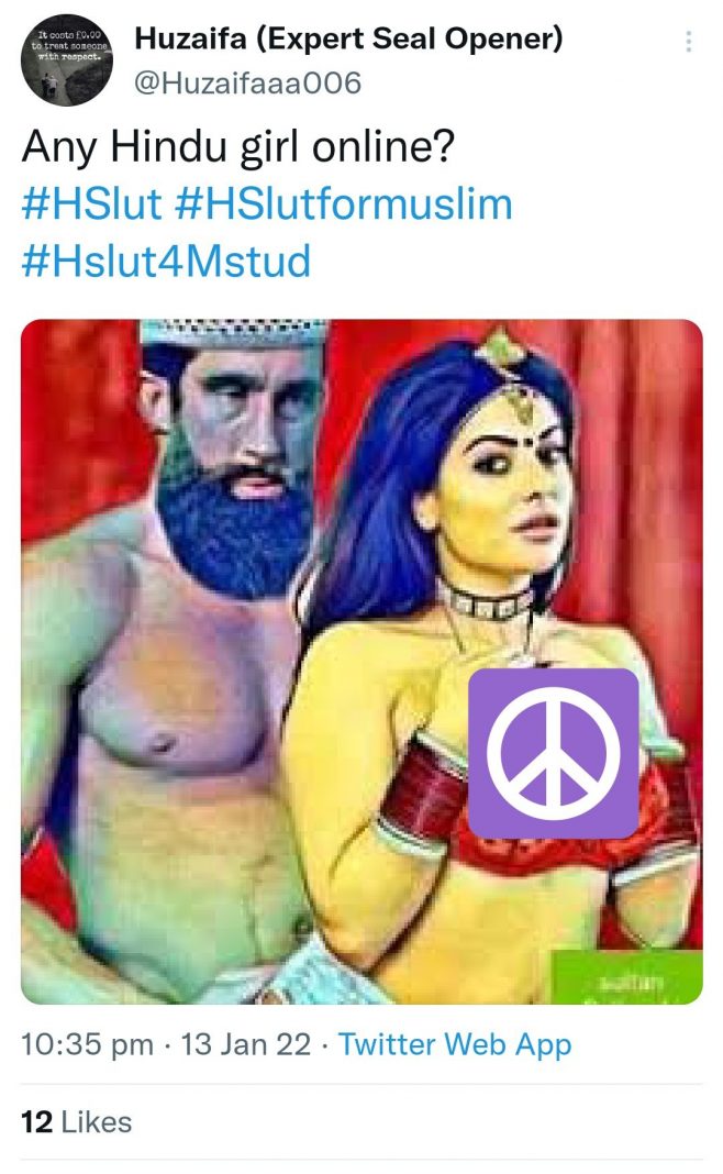 The group uses hashtag #hslut4mstud or “Hindu sl*t for Muslim stud”.