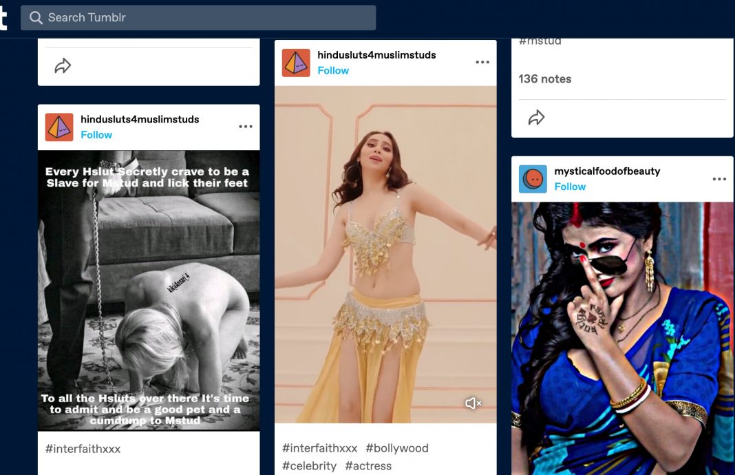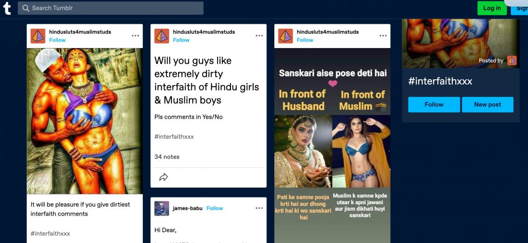 Under the tag ‘interfaithxxx’ on Tumblr, one can see some of the most disturbing images of Hindu women being sexually objectified.