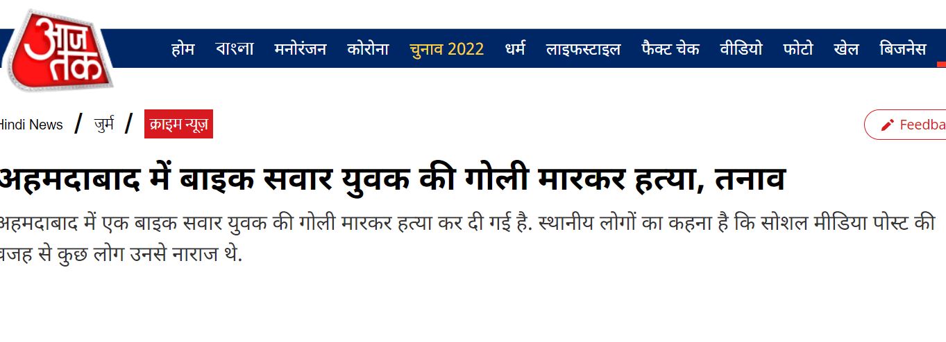 Likewise, Aaj Tak also carefully tweaked its headline to water down the heinous murder of Kishan Bharwad by bloodthirsty and intolerant Muslim fanatics.