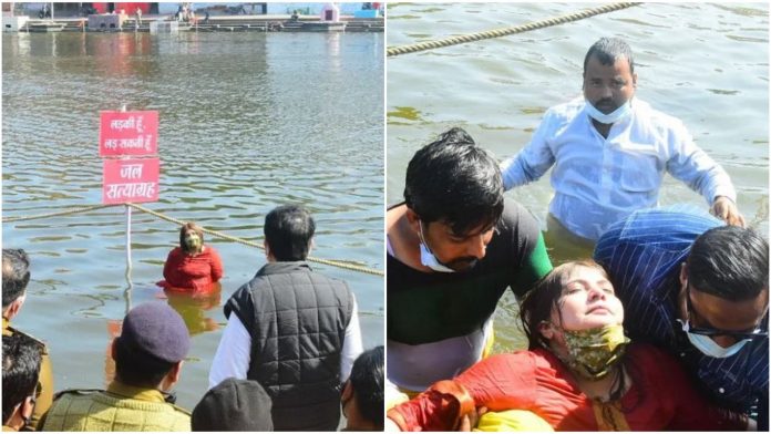 On January 20, Thursday, Madhya Pradesh Mahila Congress vice-president Noori Khan was spotted losing her grip and falling in water while performing ‘Jal Satyagrah’ in the middle of four feet of water in the Kshipra river. A major accident was averted after her supporters and the NDRF officials quickly jumped into the river and rescued her. She was later rushed to the Civil hospital. The video of the incident has gone viral on various social media platforms.