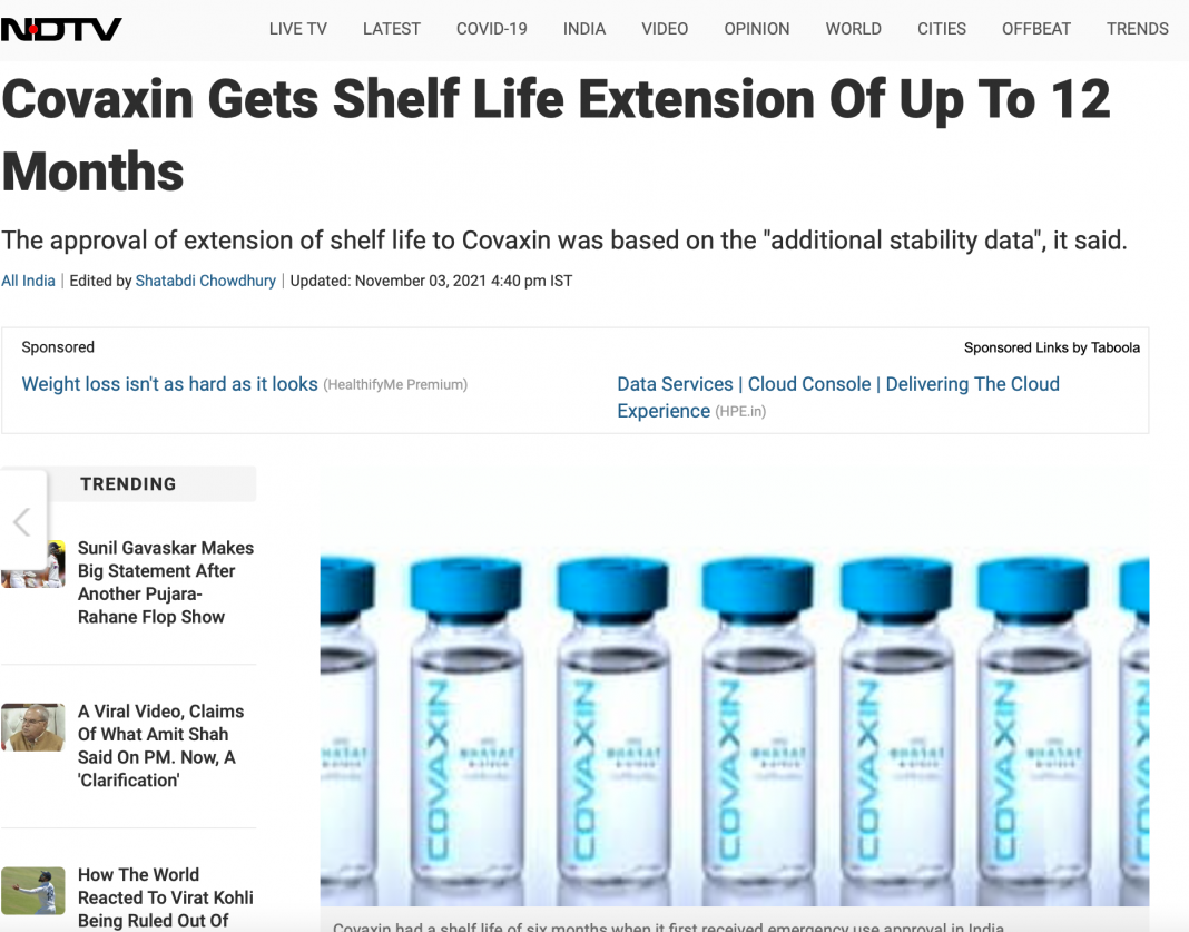 And more importantly, NDTV was one of the media organisations that covered the news about the extension granted to Bharat Biotech’s COVID-19 vaccine. The report on NDTV was published on November 3, 2021, exactly two months ago.