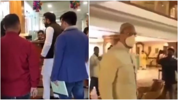 In the 2.20-minute video, AIMIM Uttar Pradesh president Shaukat Ali can be seen exchanging a heated conversation with the person sitting at the hotel reception and thereafter leaving the premises with his party members. Shaukat Ali, who looks visibly angry, speaks on the phone while leaving the premises. After a while, the AIMIM chief Asaduddin Owaisi is seen walking into the hotel. He is seen waiting at the reception area for some time before he sits in his car and leaves the premises.