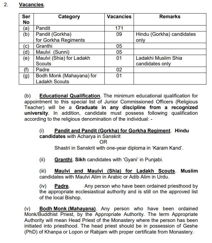 The advertisement mention that the qualification for the post of religious teacher will be Graduate in any discipline from a recognized university. In addition to that, candidate for the post of Pandit can be Acharya in Sanskrit or Shastri in Sanskrit with one-year diploma in ‘Karam Kand’. In Sanskrit Universities, the Acharya degree is considered to be equivalent to a post-graduate degree, while the Shastri is equal to a bachelor’s degree.