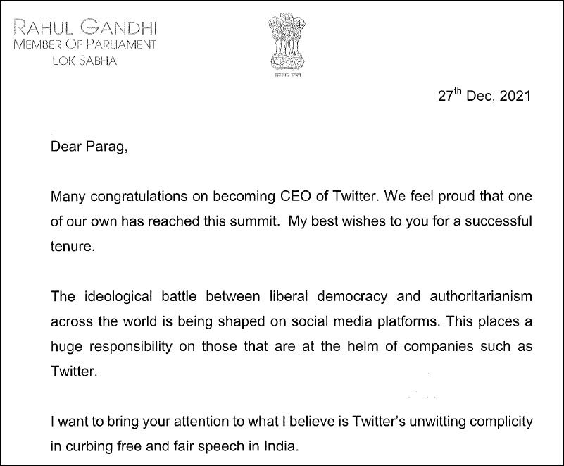 Rahul Gandhi’s letter to Twitter