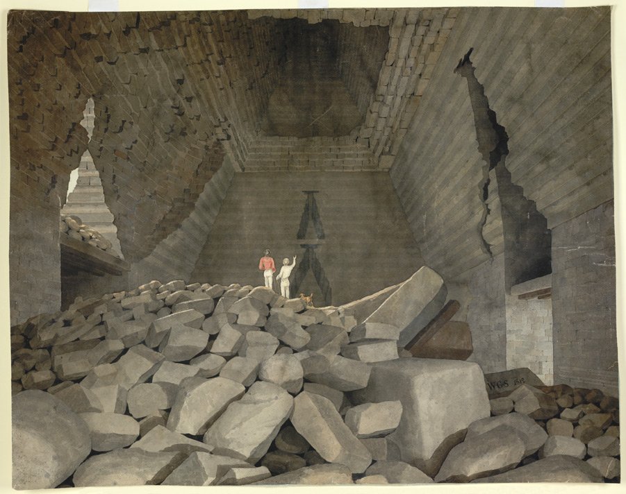 The exact dating of the fall of the temple still remains in mystery. Here is a sketch from 1820, depicting the ruins of the site which once stood as a magnificent Sun Temple.