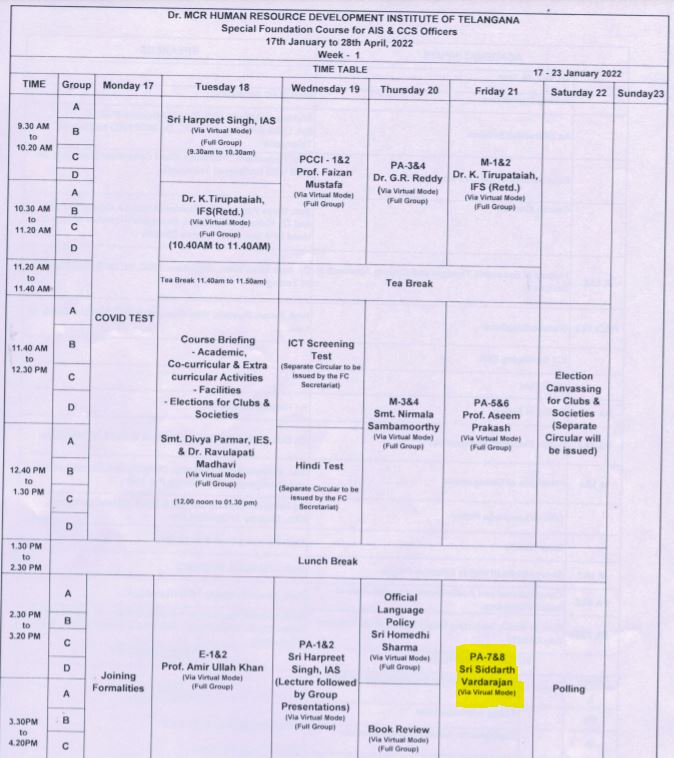 Netizens have been criticising the Telangana government-run institute’s panel selection for the course, which will begin on January 17, 2022, and run until April 28, 2022. A user shared the event schedule to highlight how the Telangana institute which is headed by the CM himself has invited Siddharth Varadarajan “who runs propaganda against India and Hindu” in the central Training Program for IPS/IFoS and other civil servants.