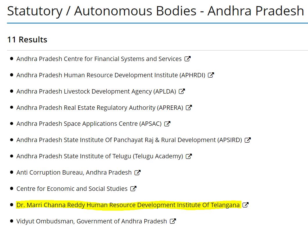 Dr Marri Channa Reddy (MCR) HRD Institute Hyderabad is also one of the 11 Statutory/Autonomous bodies of Andhra Pradesh.