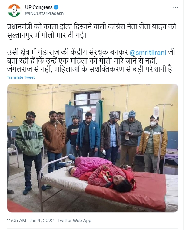 Targeting Smriti Irani, UP Congress had tried to imply that Rita Yadav was shot because she had shown a black flag to the PM.