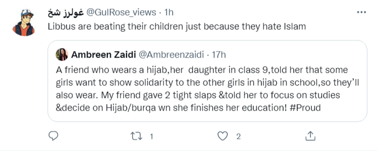 Islamists were miffed by the decision of her friend to not impose the hijab on her child or indoctrinate her with sermons of ‘Pehale Hijab, Phir Kitaab.’ One Islamist resorted to slut-shaming the author and while hailing and wishing that the girl become a slave of Allah.