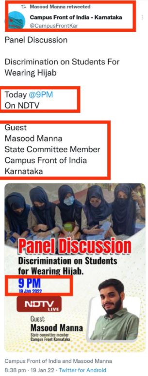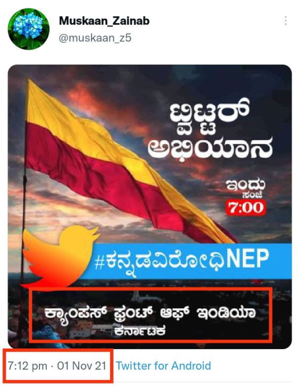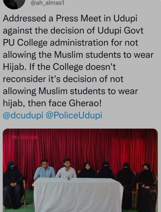 Likewise, on 19th November 2021, the four Muslim students had again participated in the hashtag campaign of CFI against the state government of Karnataka.