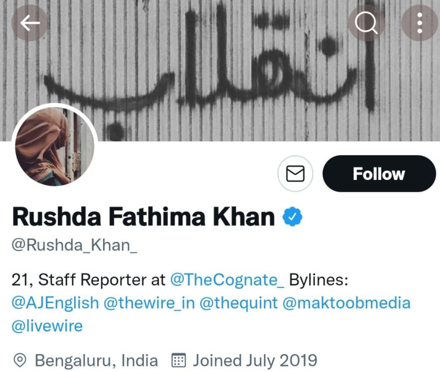 He too, as mentioned in his Twitter profile, the screenshot of which was also shared by the activist, has worked for the ultra-leftist media portals like The Wire and The Quint.