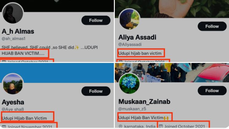 The four aforementioned women, who have filed petitions in court questioning hijab restriction in college, had “HIJAB BAN VICTIM” as their profile status.