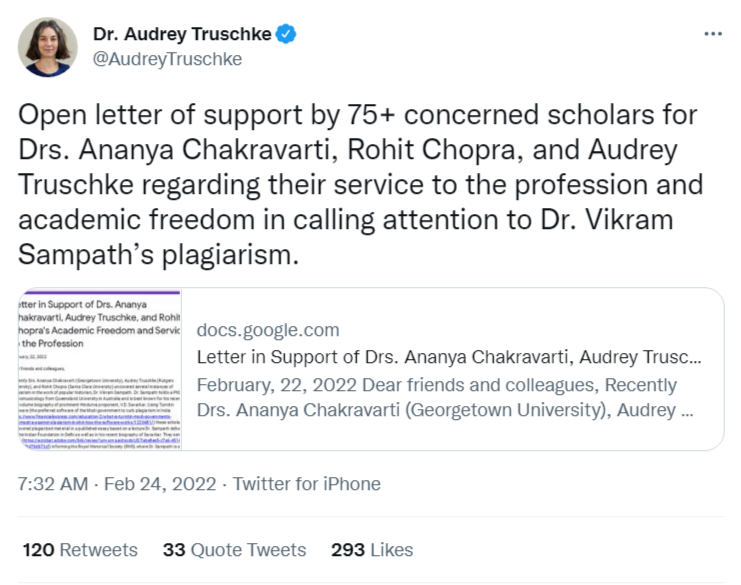 — Dr. Audrey Truschke (@AudreyTruschke) February 27, 2022