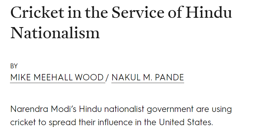 Jacobin, a left leaning American Magazine headlined, “Cricket in the Service of Hindu Nationalism”