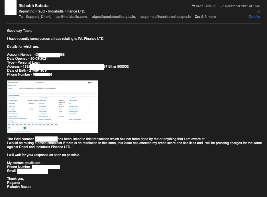 It is noteworthy PAN authentication not done by Dhani; otherwise, the loan would not have been approved. Babuta also shared complaint numbers with Cyber Crime Unit, Income Tax department, CIBIL and RBI. A solution from all departments is awaited. He said, “I had shared the details with the Cyber Crime officer on the January 14. After I received a confirmation email from the cyber cell National account, but they never got back to me neither answered my calls after that.”