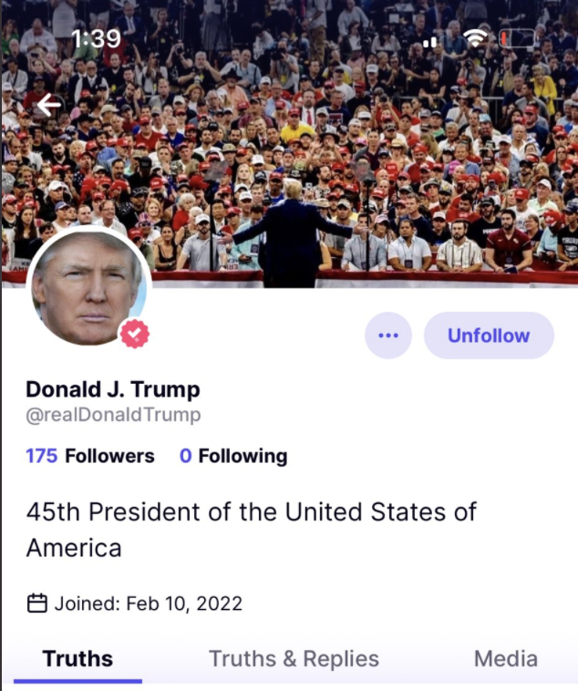 Screenshots of Trump’s Truth Social account show he reportedly joined the social media network on February 10. On Truth Social, Donald Trump had 175 followers.