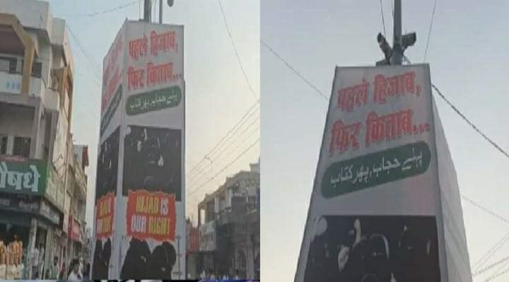 The burqa row in Karnataka has now spread to other states as well. Banners supporting the burqa were raised in the Beed city of Maharashtra on Tuesday 8th February 2022 in the evening. The banners were removed late in the night after the police intervened in this matter. A local student leader of AIMIM was detained by the police for inquiry in this case. He was released after questioning. The banners were removed late in the night.