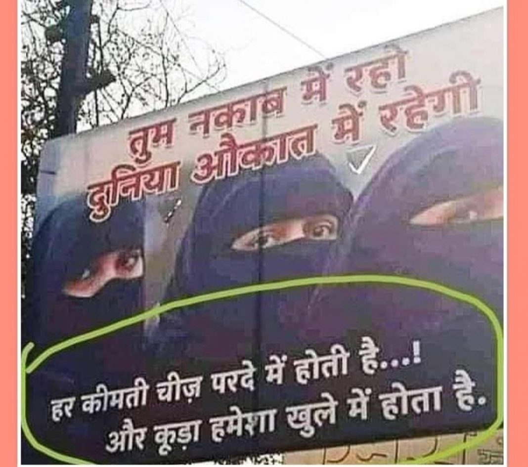A poster in India recently showed women covered in burqa which read ‘every precious thing is always in a pardah and garbage is always open’. This kind of ideology dehumanises non-Hijabi women and paints them as a target. This makes public spaces unsafe for non-Hijabi women.