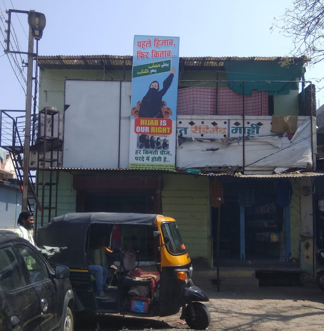 Now, in Georai town which is a Taluka place situated at 30 KM from Beed, similar banners are seen in the Mominpura area. The banner reads ‘Pehle hijab, fir kitab’ which means ‘Hijab first, books later’. On the banner, it is also written that ‘hijab is our right’ and ‘har keemati cheez parade me hoti hai’ which means ‘every precious thing is kept covered’. The banner also reads the names of the organizations that have raised this banner. The organizations are named as ‘Mominpura Youth Club’, ‘International Human Rights Protection Council’, ‘Hazrat Tipu Sultan Youth Forum’ and ‘Maulana Azad Youth Forum’ of Georai.