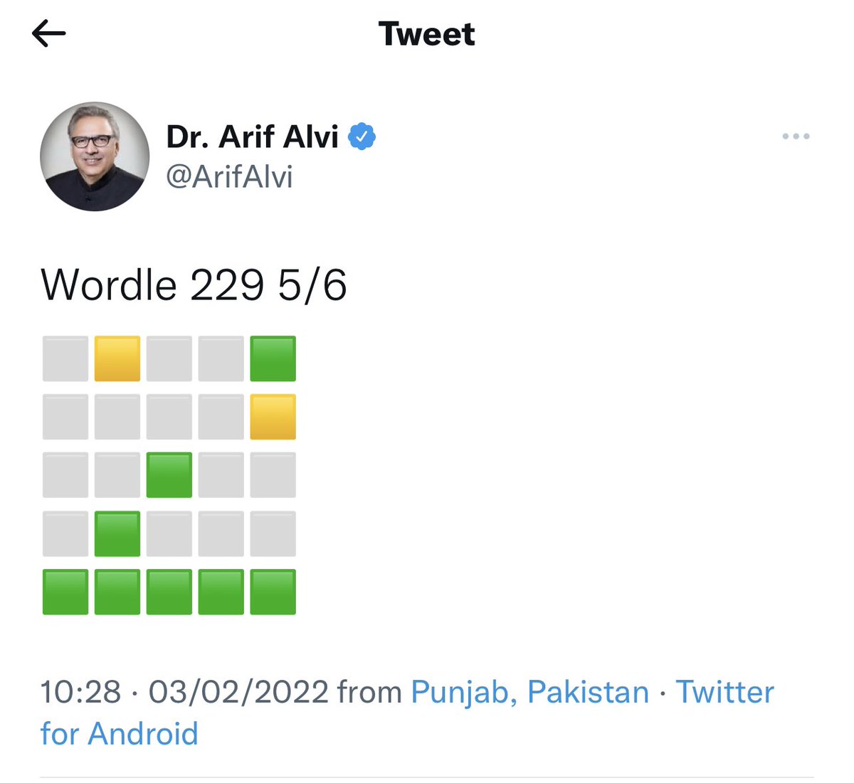 After facing massive outrage, Arif Alvi deleted his Wordle score tweets.