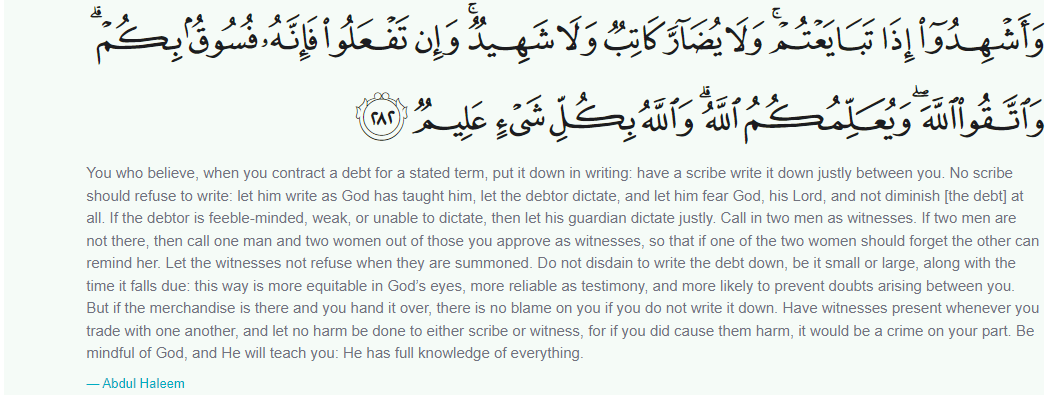 Women are less trustable than men (Chapter 2, Verse 282)