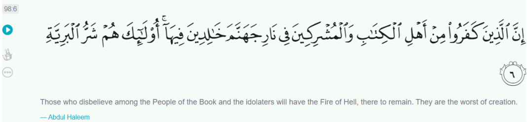 Non-Muslims are the worst of creatures (Chapter 98, Verse 6)