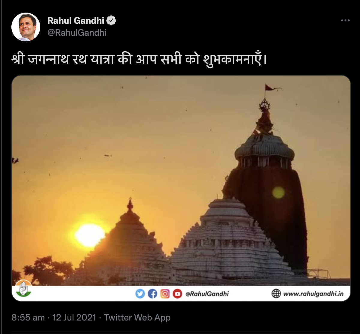 In June last year, Rahul Gandhi had put out another phoney tweet on the occasion of Jagannath Yatra. However, the images of deities were missing from his tweet.