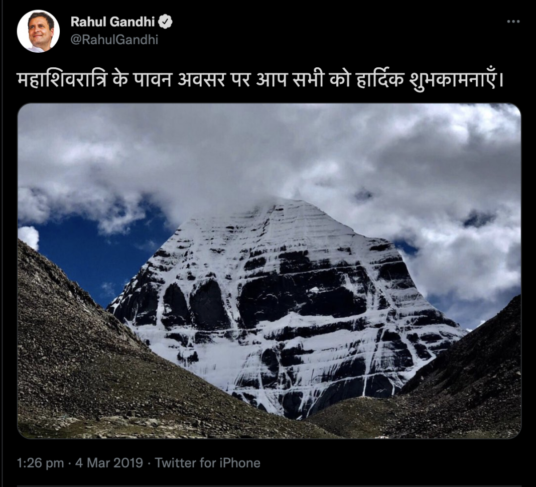 Again during Maha Shivarathri, Rahul Gandhi put out an image of Kailash mountains instead of directly posting Lord Shiva’s images on his tweet.