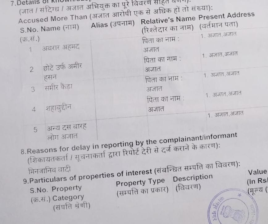 In the aftermath of the incident, the area has remained tense. To prevent any untoward incidents, a large police force has been stationed in the vicinity. In this instance, police have filed charges against 10-12 unidentified suspects, including Abrar Ahmed, Chhote alias Amir Hasan, Sameer Kaida, and Shahabuddin and have started an investigation into the case.