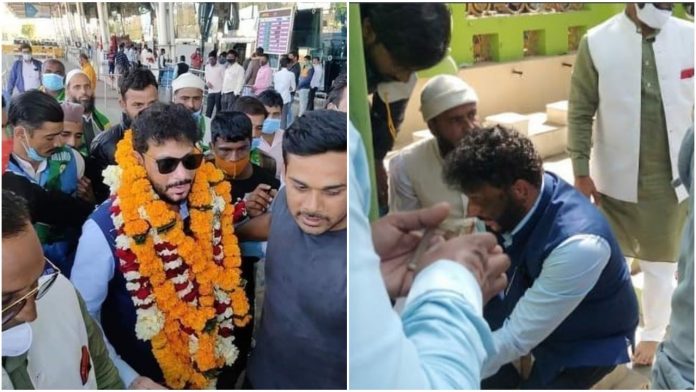 Ink thrown on AIMIM leader Waris Pathan, brother of owaisi in Indore.