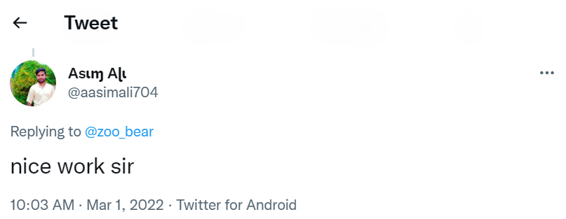 Another user Asim Ali replied to the tweet of Zubair writing, “nice work sir”